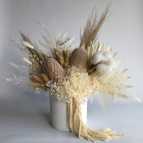 - Customers love Feather and Fleur for their beautiful dried flower arrangements, excellent customer service, and stress-free wedding/event planning experience.